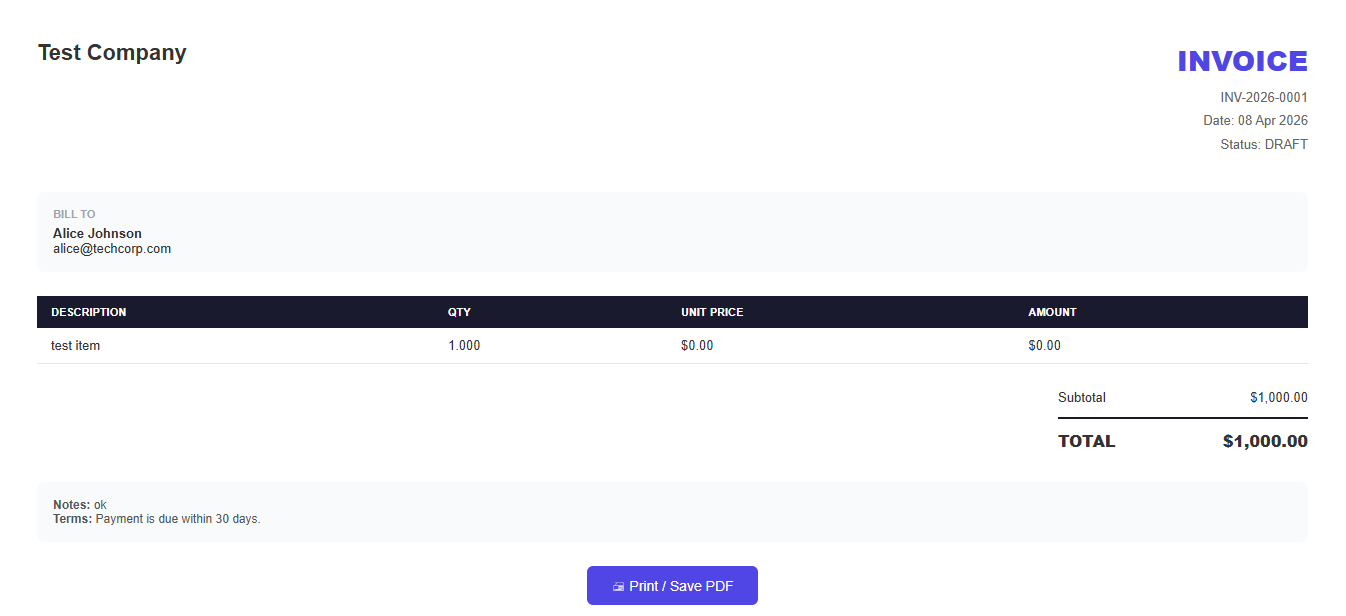 Generate professional quotations for clients with itemized details and pricing.